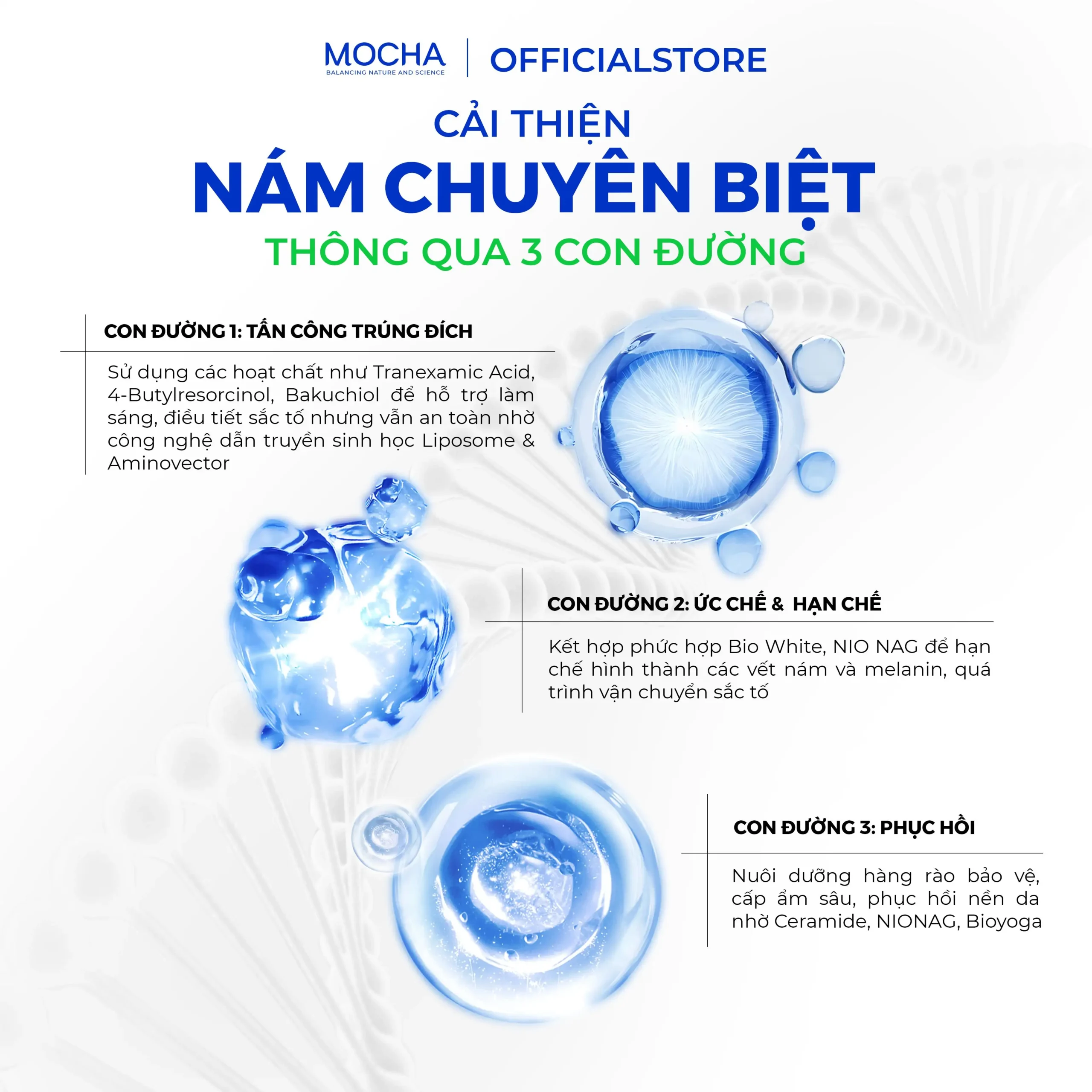 1. Mocha Nám là sản phẩm chứa 4 thành phần hoạt chất trị nám mạnh mẽ nhất hiện nay được nghiên cứu lâm sàng  (4 Hoạt chất trị nám tốt nhất hiện nay đều có mặt trong 1 sản phẩm kem dưỡng)